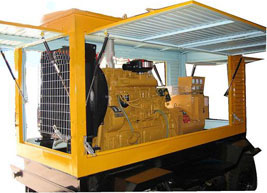 天河柴油发电机组/移动柴油发电机组设计独具创新,机动性高、重心低、制动安全、制造精良、外形美观。 天河拖车车架采用槽梁焊接成框架结构,节点选择合理、强度高、刚性好;同时装有钢板弹簧悬架结构;拖车采用高度可调节插销式牵引架,适用于各种高度牵引车;采用圆形钢管焊接直通式车轴,结构紧凑,安全可靠;车架四角设有机械式支撑装置,配备惯性行车制动、驻车制动和脱离应急制动,确保机组在各种状况下的安全;车架前端设有支撑轮,具备承受机组垂直载荷的功能的同时还具备导向功能;整车配备转向和刹车指示灯,同时装有尾灯标准插头